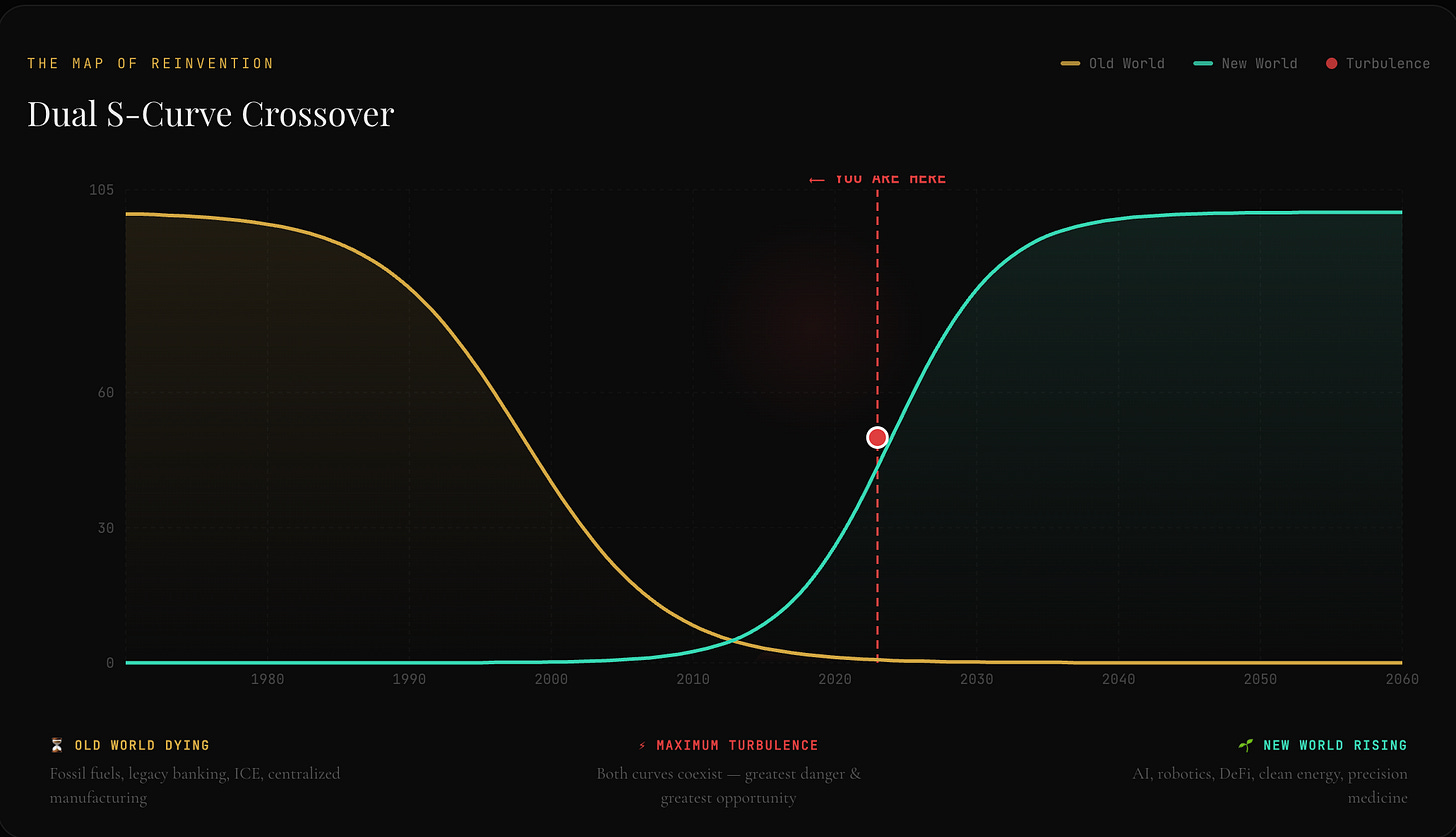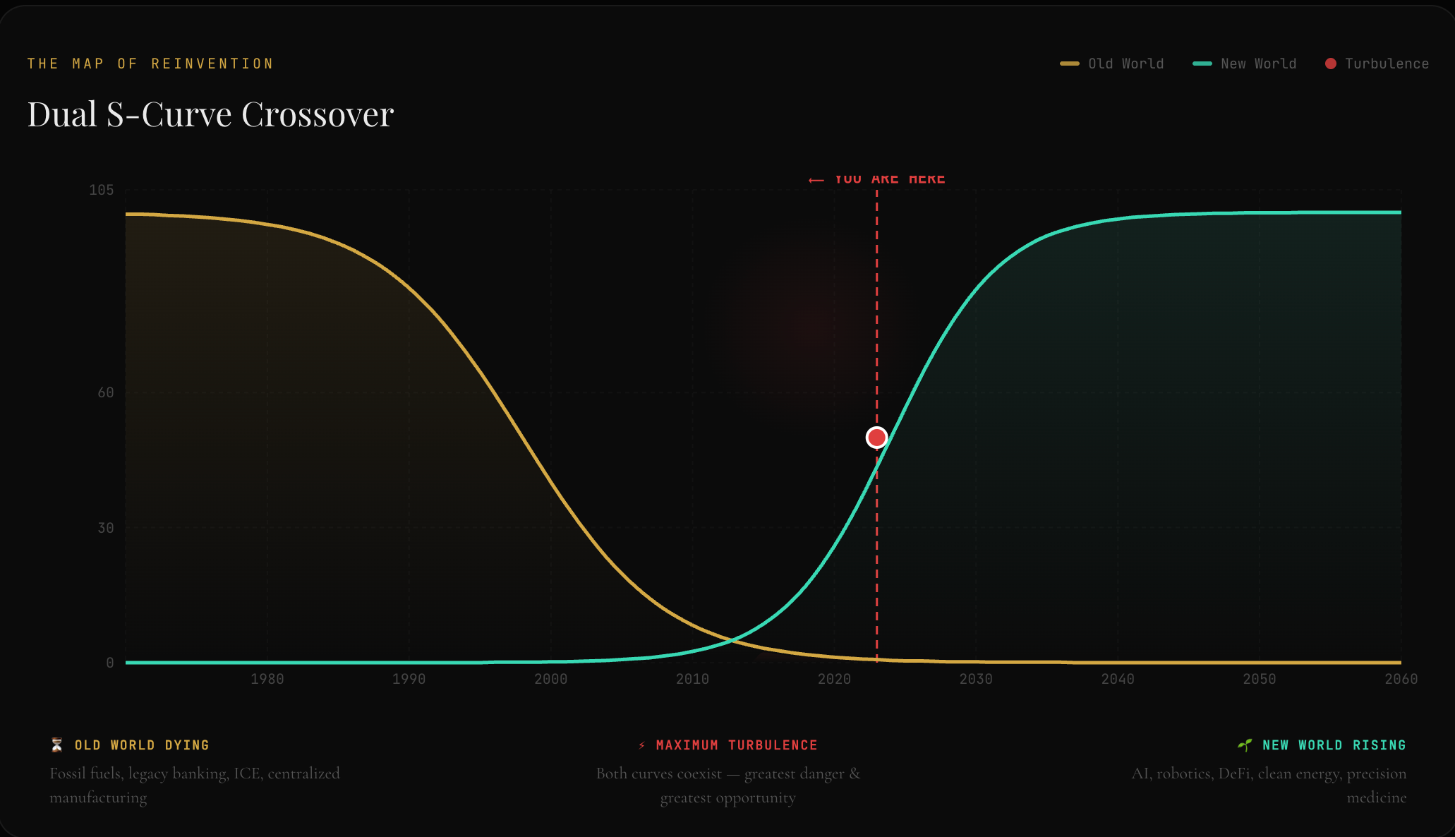 The Manifesto maps this from first principles — with interactive visualizations, the population convergence chart, and the four signals from Jensen Huang, Elon Musk, Didier Sornette, and a whiteboard that changed how I think about intelligence.