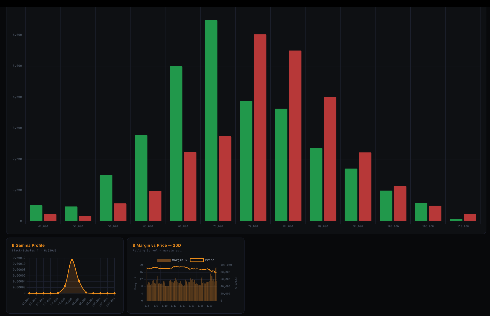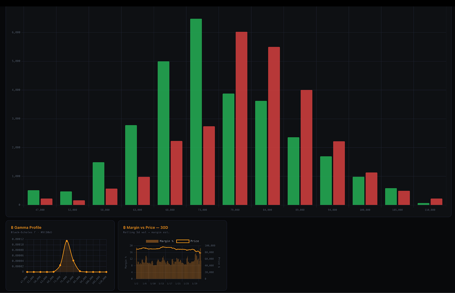 Bitcoin’s Gamma Profile: A sharp peak means even a small move in Bitcoin forces dealers to buy or sell massive amounts of BTC to stay hedged.
