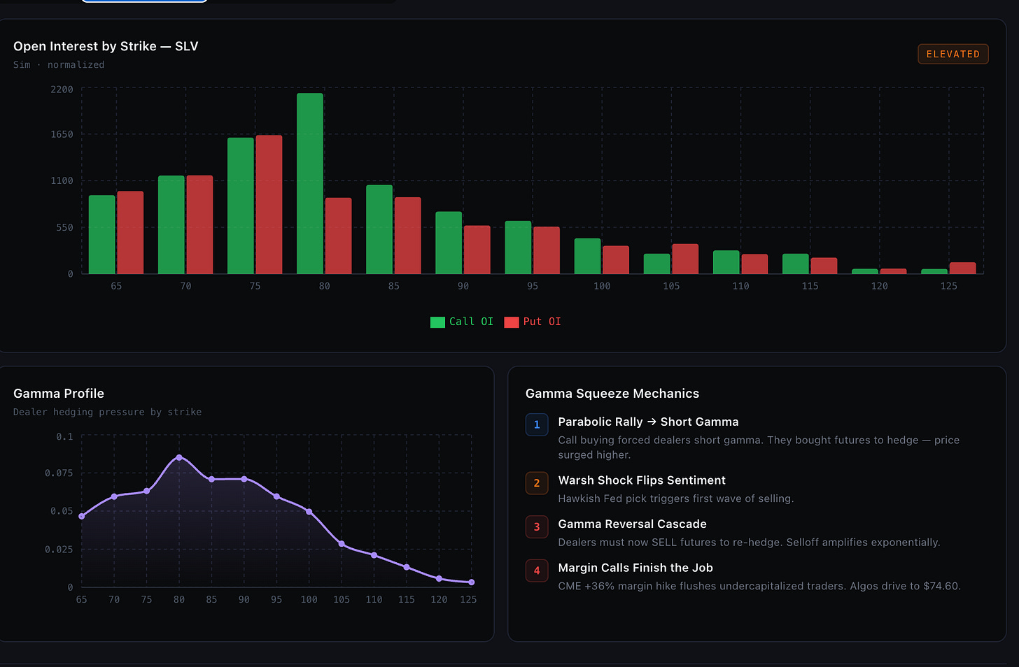 This forced dealers into a Gamma Squeeze. Their buying pushed the price up, which made more people buy bets, which forced dealers to buy even more silver. It was a dog chasing its own tail at 100 miles per hour.