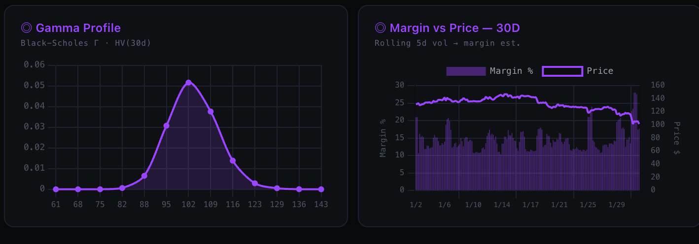 The Margin Call: The exchanges raised the “cost of entry.” Look at your Margin vs Price dashboard below. As the price (white line) began to dip, the margin requirements (purple bars) spiked.